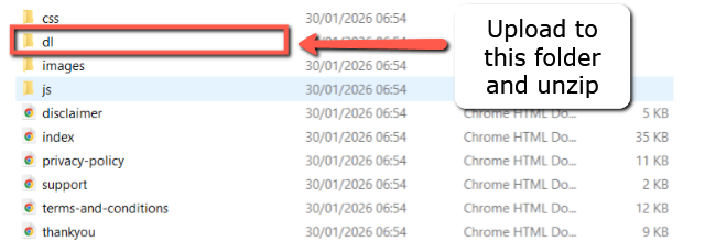 Now you need to upload this file to your site, and specifically to upload it to the folder called dl as shown in the image below.