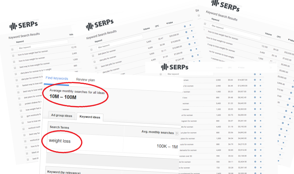 “Weight Loss For Women” related keywords have high organic searches every month, with high competition, and high CPCs – a sure sign of profitability.